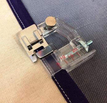 Pé Calcador regulável para aplicação de viés de até 4cm de largura (40mm) aberto.