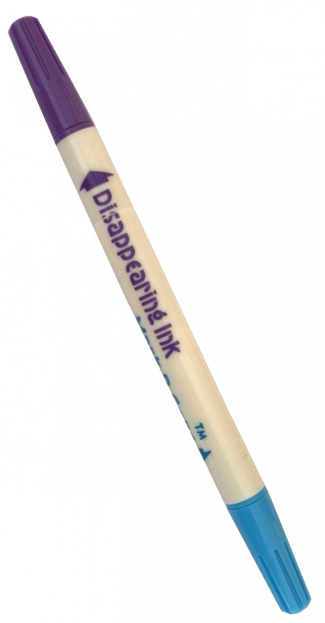 Carregando...Caneta para tecido Dritz, ponta dupla: a tinta sai imediatamente com pano úmido ou se apaga com o tempo.