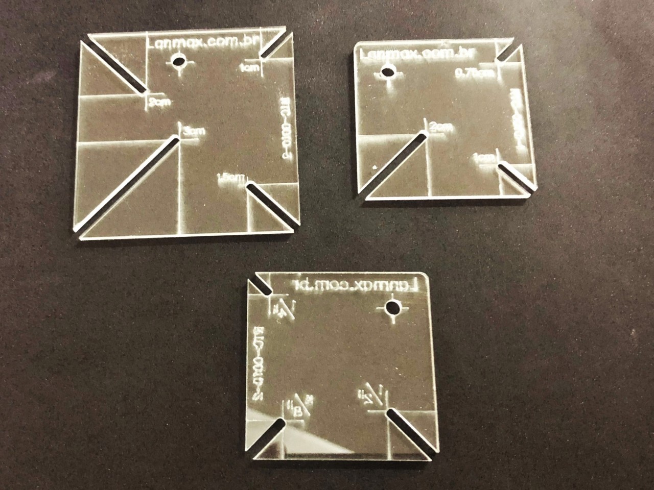 Réguas de acrílico transparente, com espessura de 3 mm, gravado e cortado a lazer, portanto as marcações não se apagam.